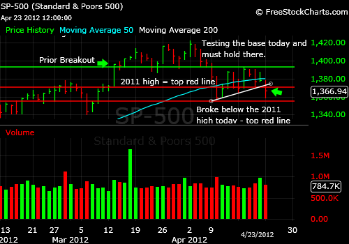 Note that the SP500 Index has broken below the 2011 high breakout point. A big negative unless it recovers promptly.