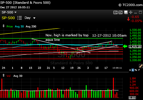SP500 Index Support is nearby and should hold at least until the fiscal cliff question mark is removed.