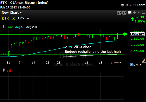 There are some markets like Biotech that are already rechallenging their recent highs, which does give the Bulls some hope. Still, I would not buy biotech until new highs are achieved or until a significant correction is sustained. This is NOT the place to buy.
