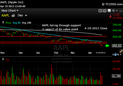 So what happened on the Apple chart? Same thing as gold. It broke support AGAIN this week and dropped another chunk of its valuation as the chart shows (note: Apple earnings are out on Tuesday):