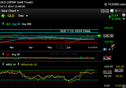 The Gold ETF Chart (GLD; click to enlarge the chart):