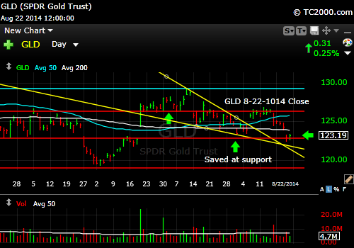 The Gold ETF Chart (GLD; click to enlarge the chart):