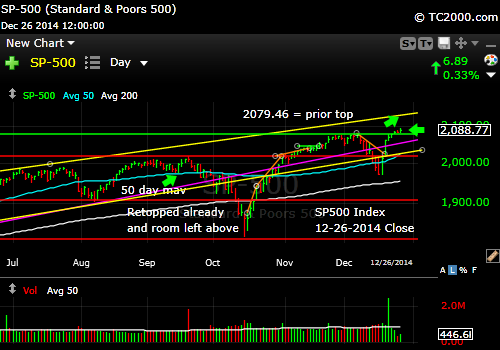 A Market Timing Report based on the 12-26-2014 Close, published Sunday December 28th, 2014