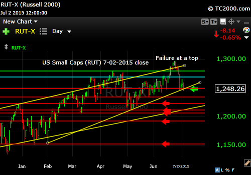 1. The Greek default (that already happened this week with the added current threat of a NO vote of the Eurozone offer in the referendum today) has our markets on edge, but what really has them on edge are the soft earnings to come in the next few weeks starting this Wednesday, July 8th. Realize that Greece is just a distraction to the U.S., as even the European banks do not have most of the exposure to their debt default. The big institutions have taken on the bad debt to insulate the banks at the expense of others. This does not say that everything will be find and dandy if Greece goes fully belly up.
