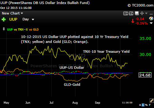 FIRST a GOLD UPDATE 10-12-2015: Gold is Really Following the US Dollar More Closely Than Interest Rates: This is why you must trade gold to make money in the near term in my opinion (IMO).