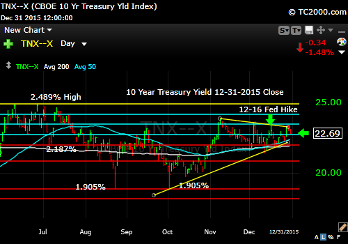 Market timing the U.S. 10 Year Treasury Note (TNX, TLT, TYX, TBF). Rates stay down after the Fed hikes.