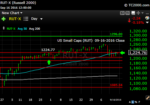 Market timing the US Small Cap Index (RUT, IWM). Rose to resistance and stopped pre-Fed meeting.