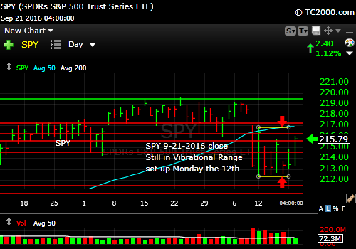 Market timing the SP500 ETF (SPY, SPX). Positive move within vibrational range.