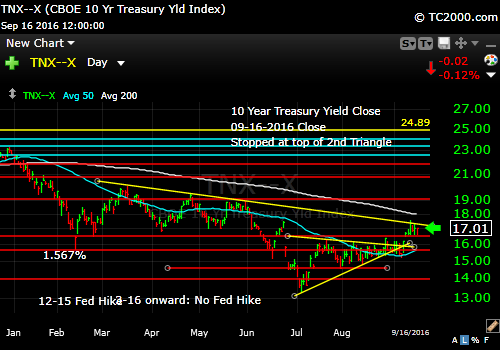 Rates rise in the 2nd triangle. They should fall if the Fed does not raise rates Wednesday.