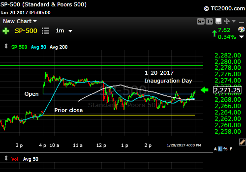 Market timing the SP500 Index (SPY, SPX). 1 min chart of Inauguration Day.