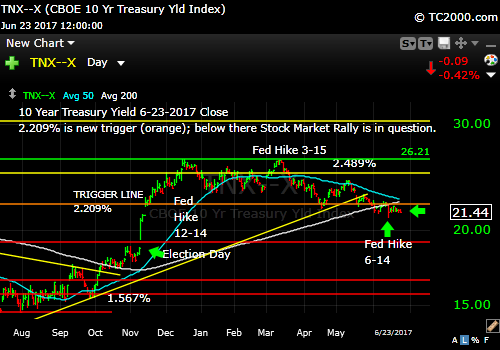Market timing the U.S. 10 Year Treasury Yield Index (TLT, TNX, TYX). Rates still “below trigger point.”