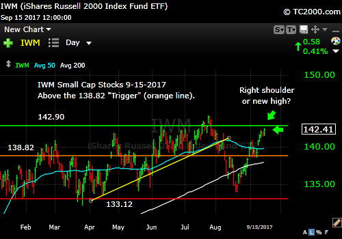 Market timing the U.S Small Cap Index (IWM, RUT). New high needed now in small caps. Need to avoid R shoulder formation.