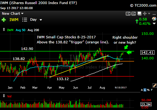 Market timing the U.S Small Cap Index (IWM, RUT). New high needed now in small caps. Need to avoid R shoulder formation.