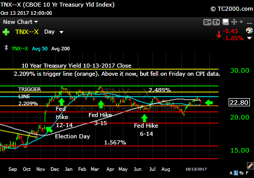Market timing the U.S. 10 Year Treasury Yield Index (TLT, TNX, TYX). Rates fall as the core CPI comes in soft.