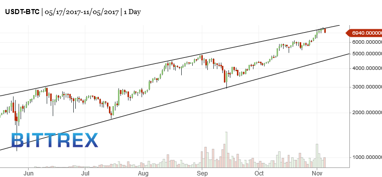 Bitcoin pulling back from the upper trend line.