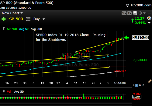 Market timing the SP500 Index (SPY, SPX). New high, but with a recent sentiment peak.