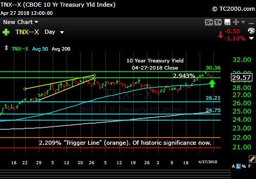 Market timing the US 10 Year Treasury Yield (TNX, TYX, TLT, IEF). Rates coming off high.