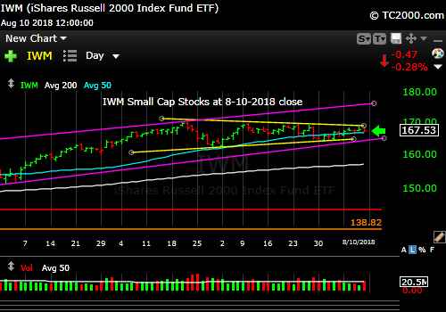 Market timing the U.S Small Cap Index (IWM, RUT). Triangle is still a fight between Bulls and Bears.