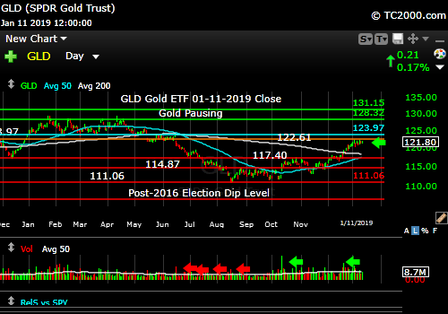 Market timing the gold ETF (GLD). Gold trend is pausing but not done yet.