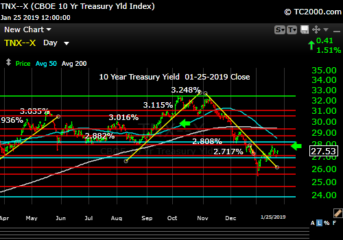 Market timing the 10 Year U.S. Treasury Yield (TNX, IEF, TLT). Rates back to falling from rising again?