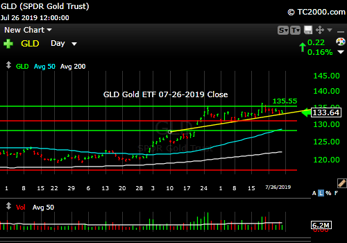 Market timing the gold ETF (GLD). Failed breakout, but ascending triangle now, so Bullish still.
