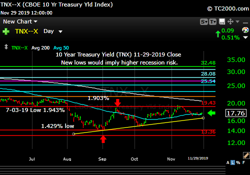 Market timing the US 10 Year Treasury Yield (TNX, TYX, TLT, IEF). Five days of “sideways” meaning consolidation.