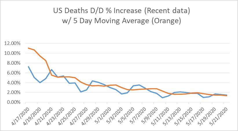 2020-05-21-US COVID-19 Day Over Day Death Percentage Increase and 5 Day MAV