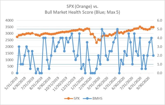 Let’s start by looking at how strong the Bull is… The Bull Market Health Score (BMHS) Update: I describe how I arrive at the score (HERE).