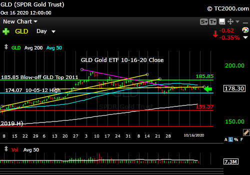 Above 179.04, G*LD is OK (the * is there in G*LD to throw off crawlers looking for prices to target), below that means the downtrend is intact and the correction continues. Eventually I expect gold to continue rising as we spend and spend and spend, but if the Biden/GOP Senate combo happens, spending will be less and gold could pull back.
