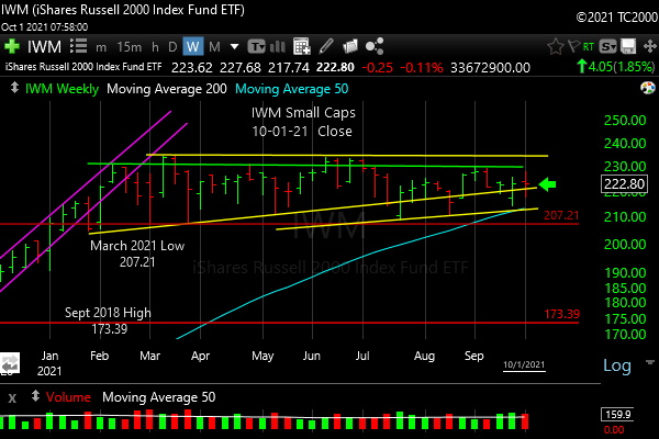 Small caps are in a trading range. Trade the range and any break UP or DOWN.
