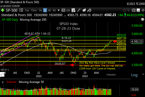 Market timing the SP500 Index (SPY, SPX) for the 7-28-2023 close.