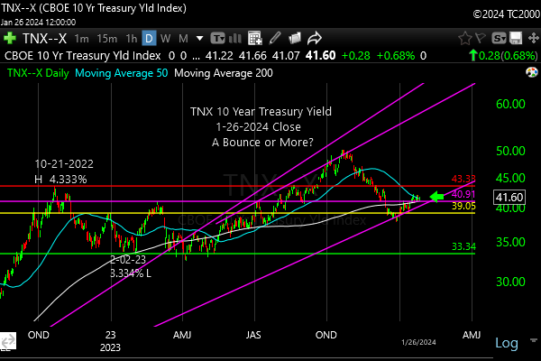 Market timing the US 10 Year Treasury Yield (TNX, TYX, TLT, IEF). Rates need to come back down or the stock market rally will fail.